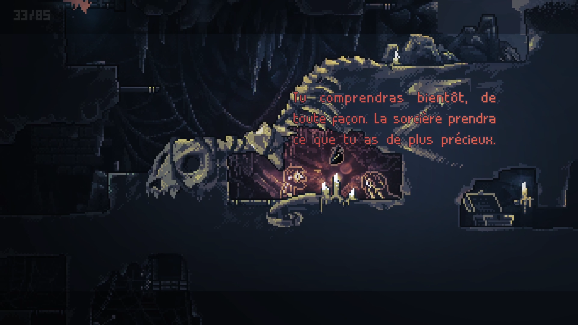 Ceci dit, le jeu nous perd un peu dans sa construction en triptyque et avec ses métaphores. J’ai passé bien la moitié du temps à ne pas comprendre ce qui se passe vraiment, ce que sont ces personnages et ce qui les réunit ici. Bien heureusement l’atmosphère lugubre et mélancolique m’a totalement garder accroché au jeu. Mais j’aurais aimé que le jeu soit moins mystérieux et vague dans sa première moitié, pour au final tout nous expliquer un fois arrivé sur la fin.