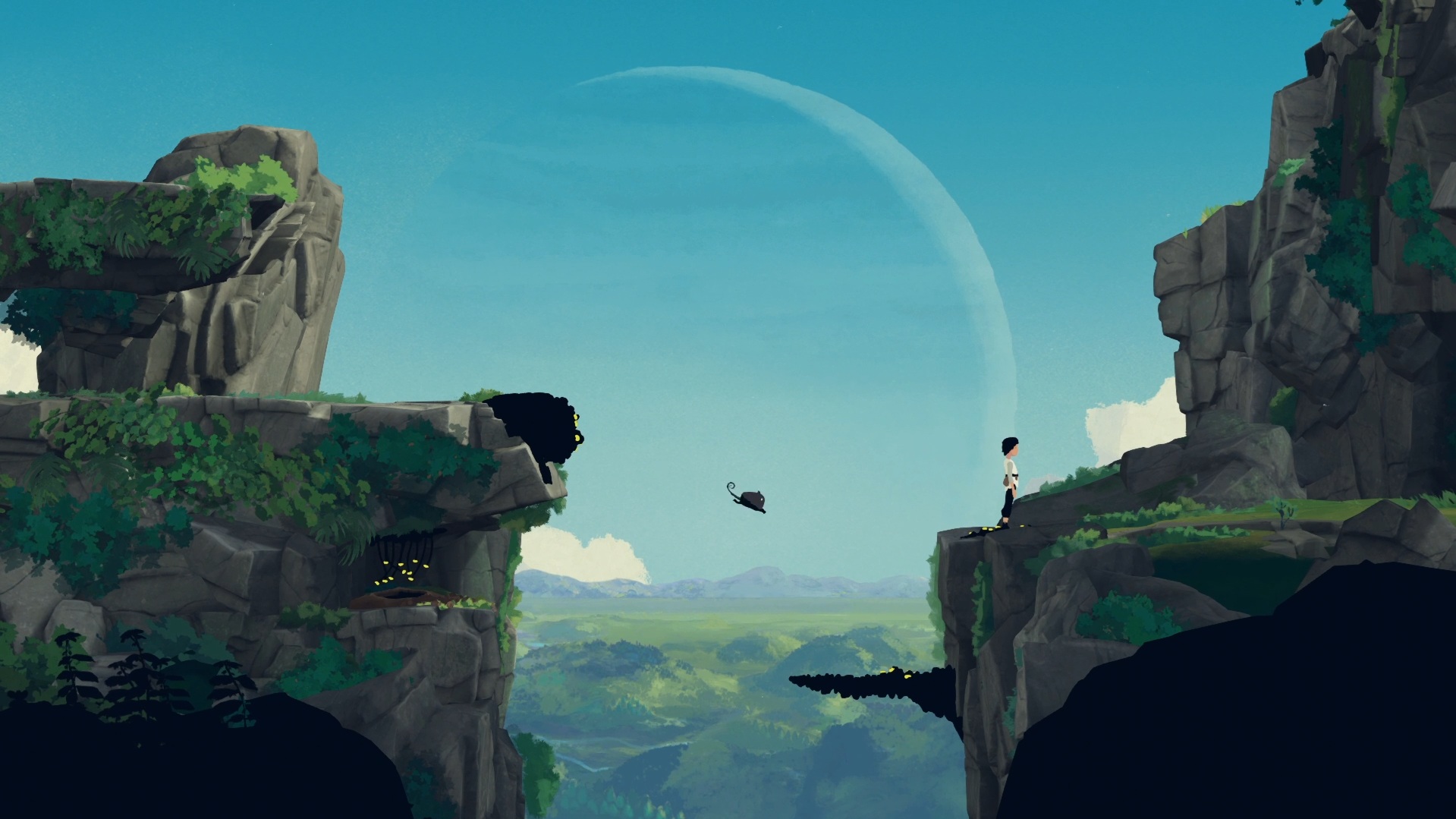 Non, ce qui fait la force de Planet of Lana, c’est ce sentiment d’émerveillement qu’il confère. Concrètement, j’ai eu l’impression de tomber sur un Sommerville façon Ghibli. Mais alors que ce dernier peine à transformer l’essai et gâche sa plastique par un gameplay bancal, Planet of Lana parvient à nous transporter dans son monde dépaysant. Il n’est pas aussi artistique et flamboyant que Neva, mais nous emporte bien mieux dans son histoire. Tandis que ce genre de jeu a la facheuse tendance à se reposer sur l’implicite, le mystère et la narration sans texte, ce qui pour moi est un cache misère agaçant, Planet of Lana est équilibré. L’histoire est suffisamment simple pour être transmise aisément dans sa globalité, et en même temps assez mystérieuse et exotique pour nous faire voyager sur cette planète sauvage qui n’est pas la Terre, bien qu’elle y ressemble.